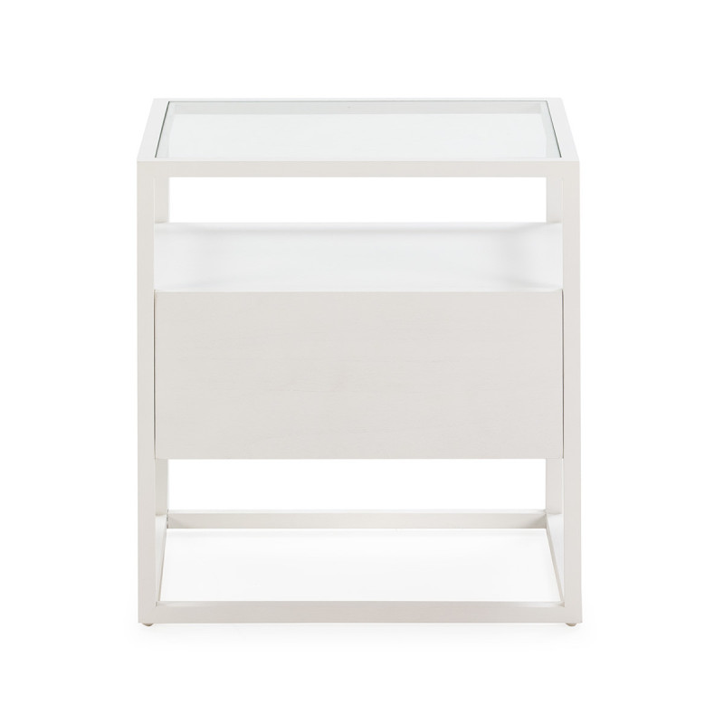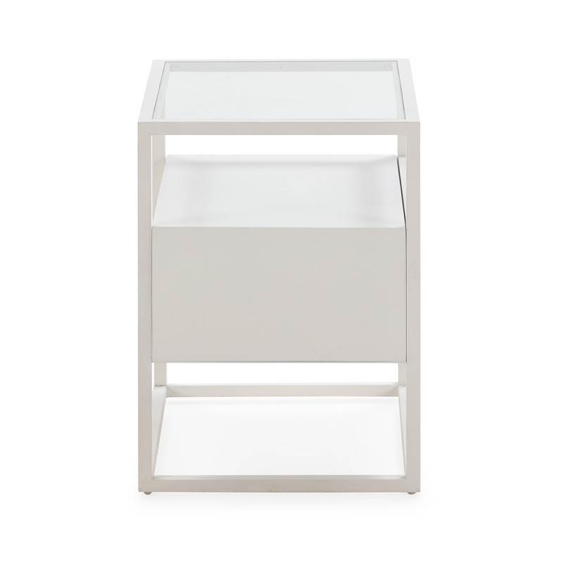 MESITA DE NOCHE 50x40x55 CRISTAL/MADERA BLANCO