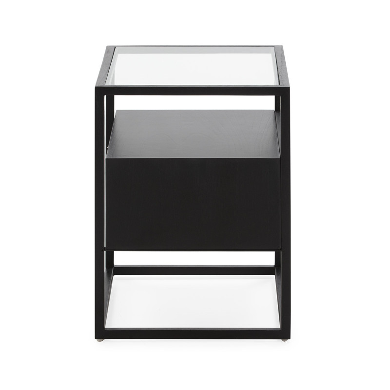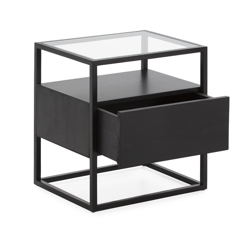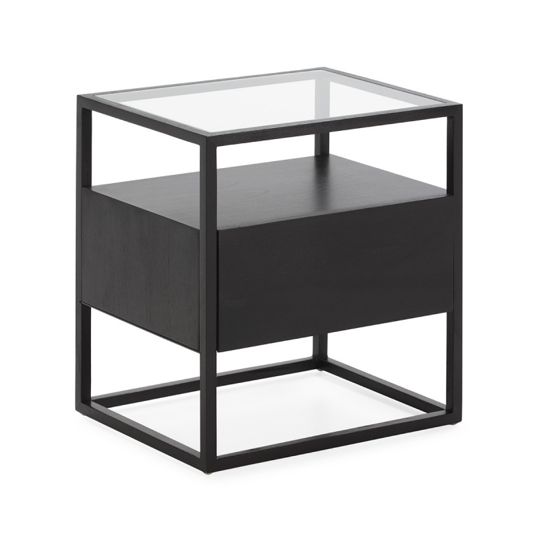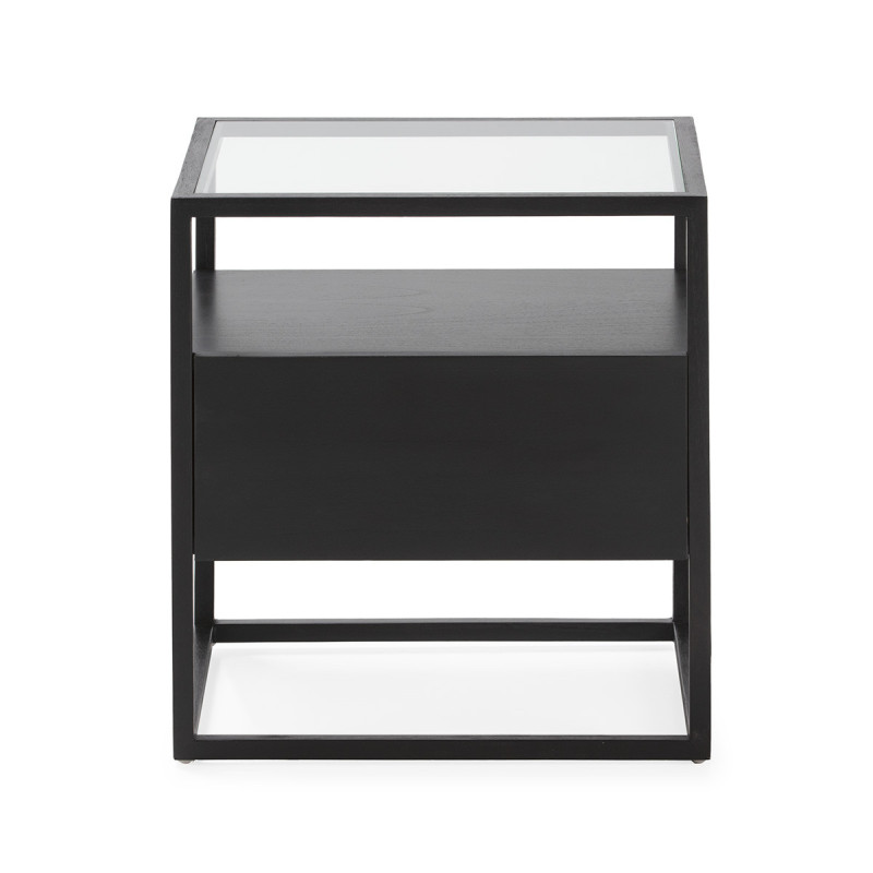 MESITA DE NOCHE 50x40x55 CRISTAL/MADERA NEGRO
