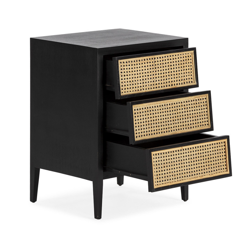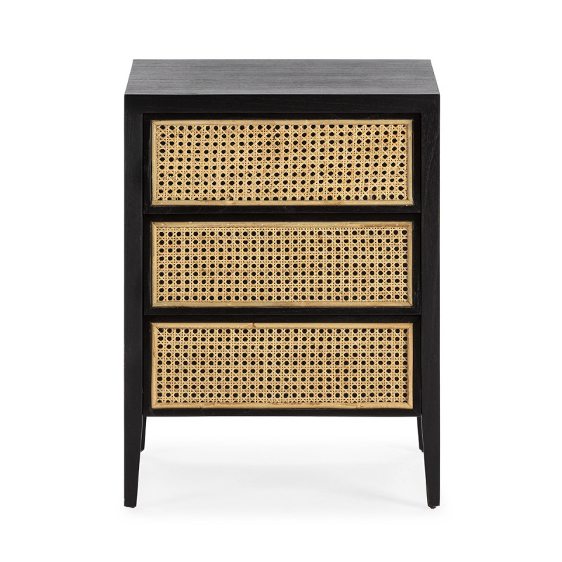MESITA DE NOCHE 50x40x65 MADERA NEGRO/RATAN NATURAL