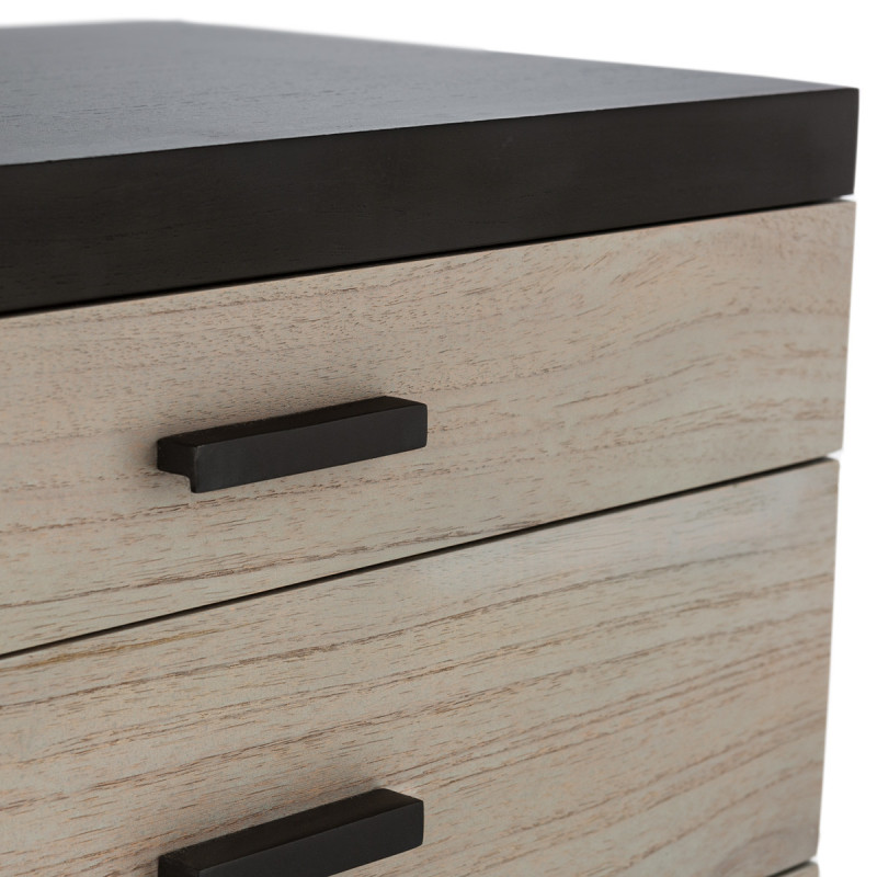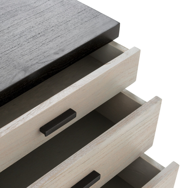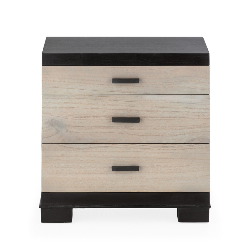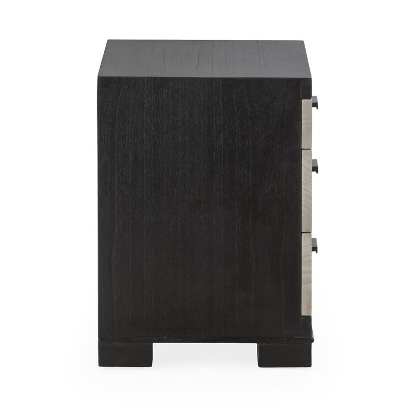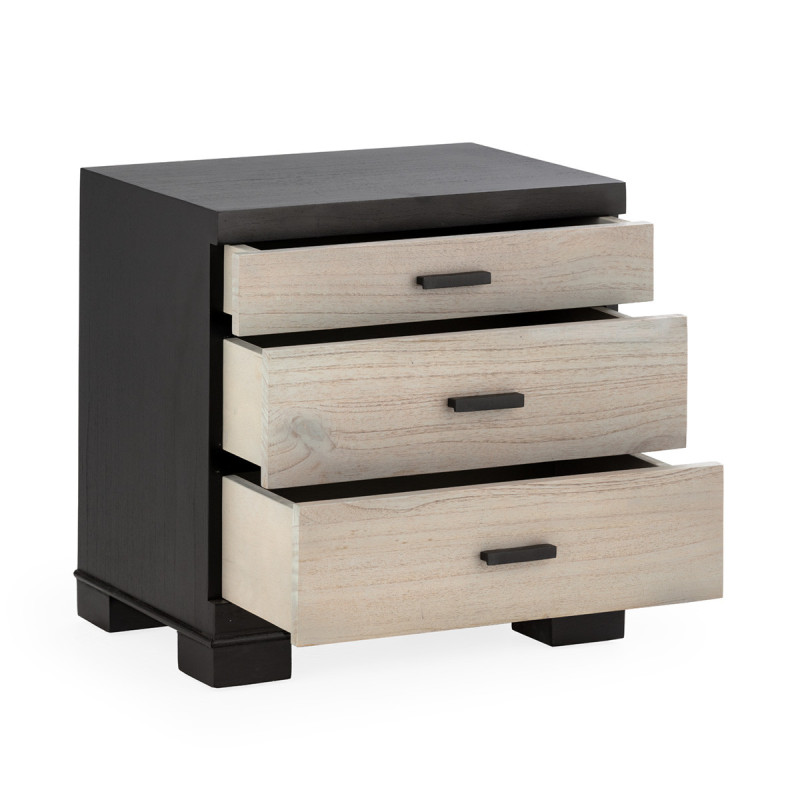 MESITA DE NOCHE 55x40x55 MADERA NEGRO/NATURAL PATINA GRIS/METAL NEGRO 3 CAJONES