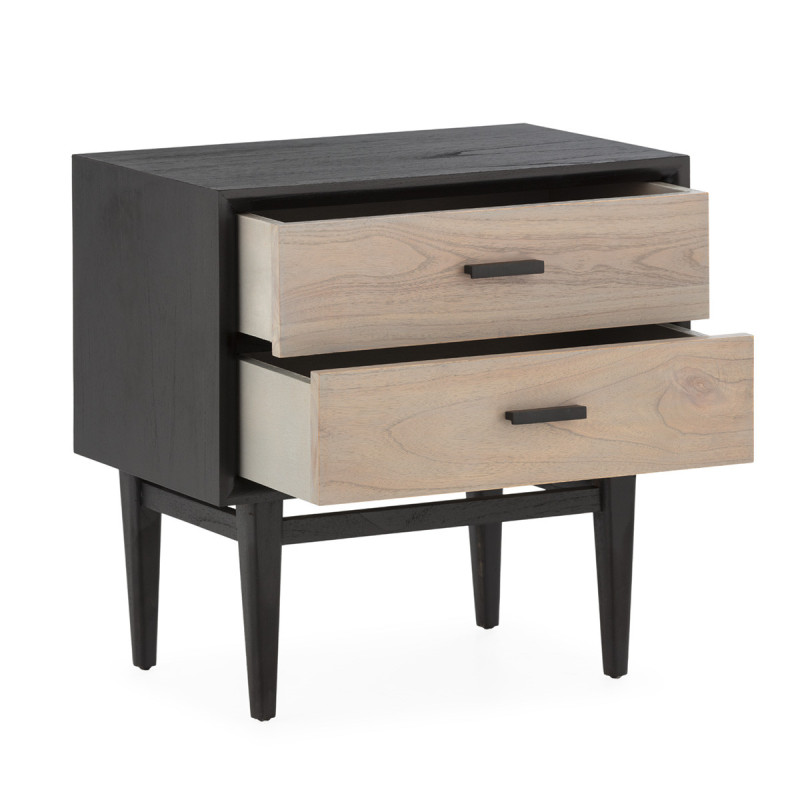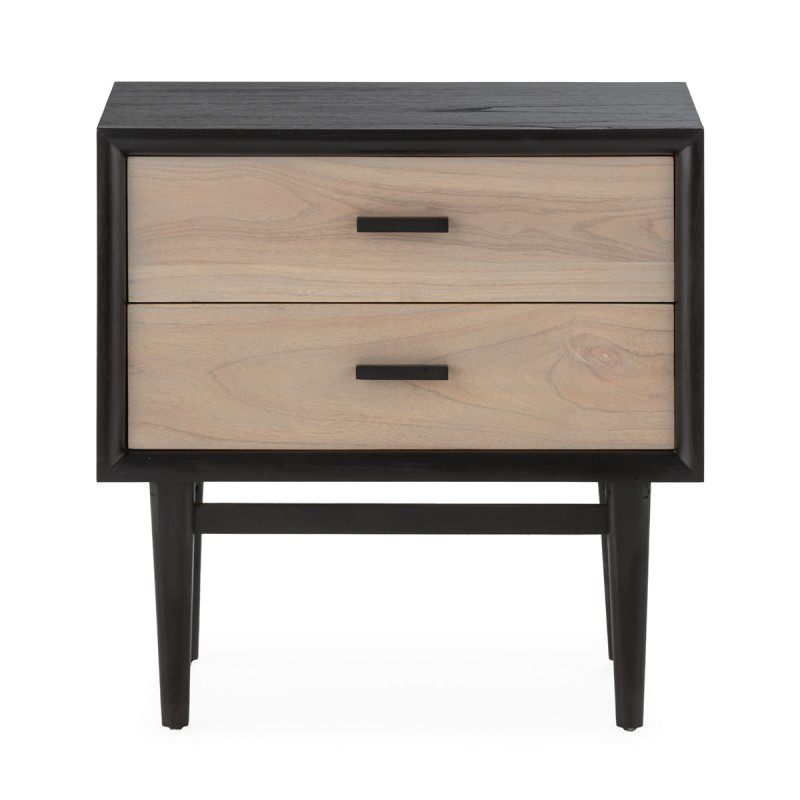 MESITA DE NOCHE 60x40x60 MADERA NEGRO/NATURAL PATINA GRIS/METAL NEGRO