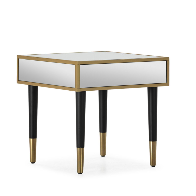 MESITA DE NOCHE 55x55x55 MADERA/METAL DORADO/ESPEJO