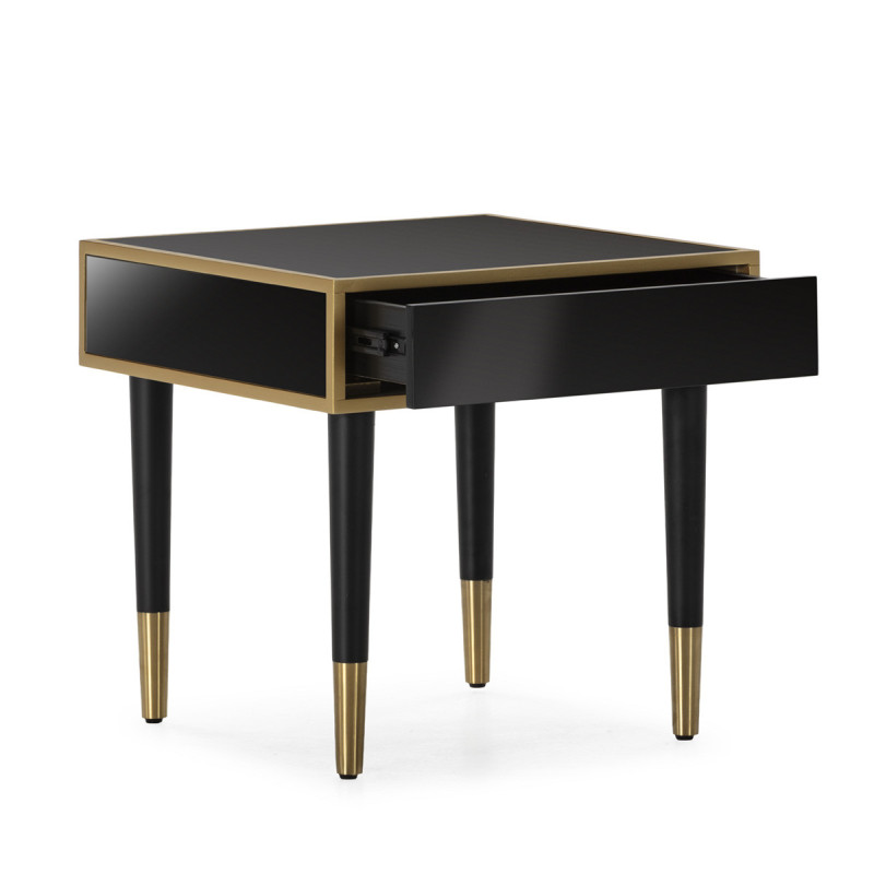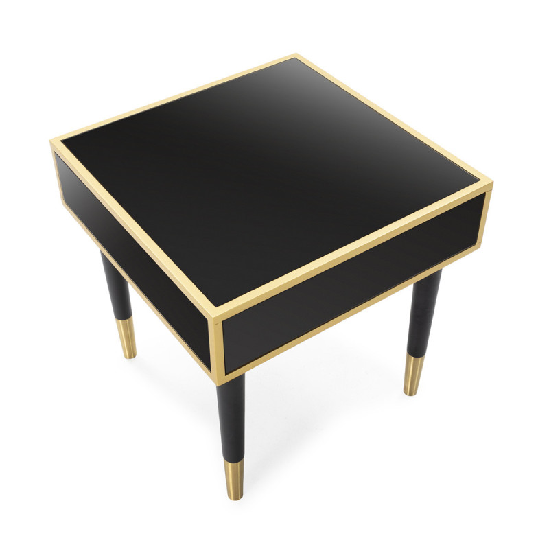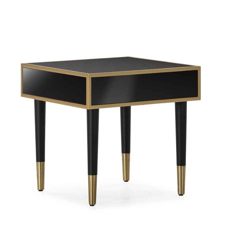MESITA DE NOCHE 55x55x55 MADERA/METAL DORADO/ESPEJO NEGRO