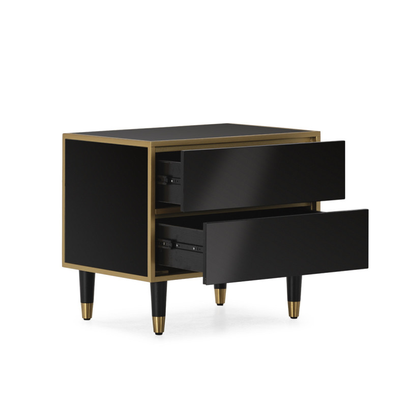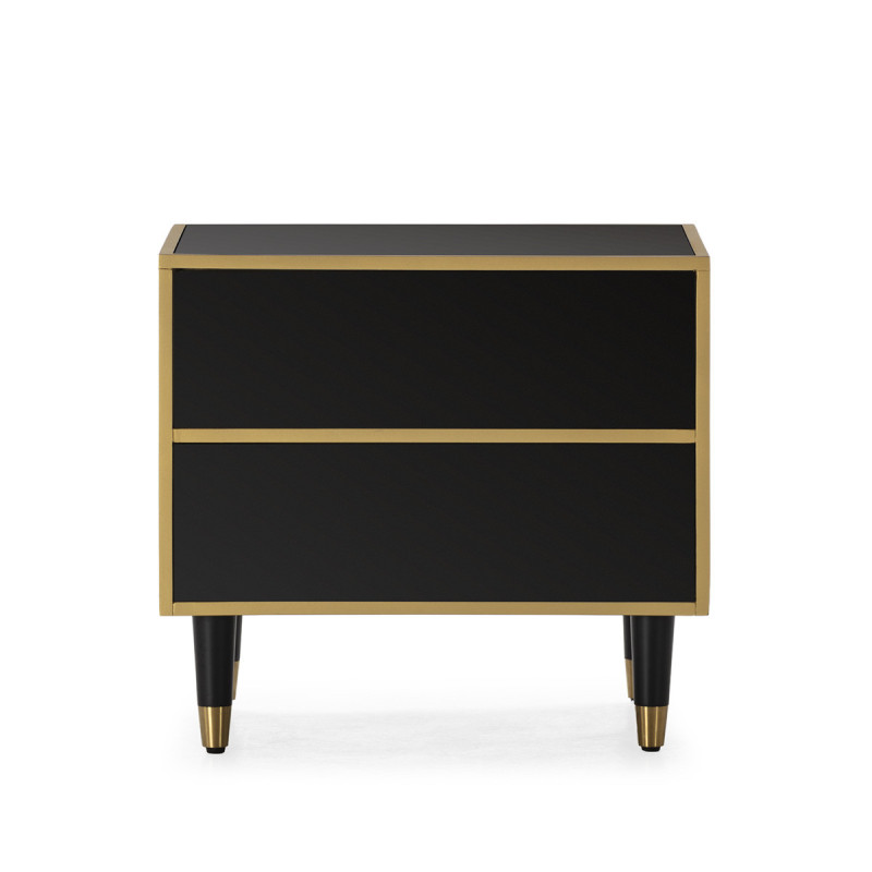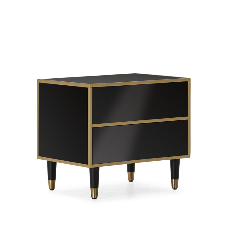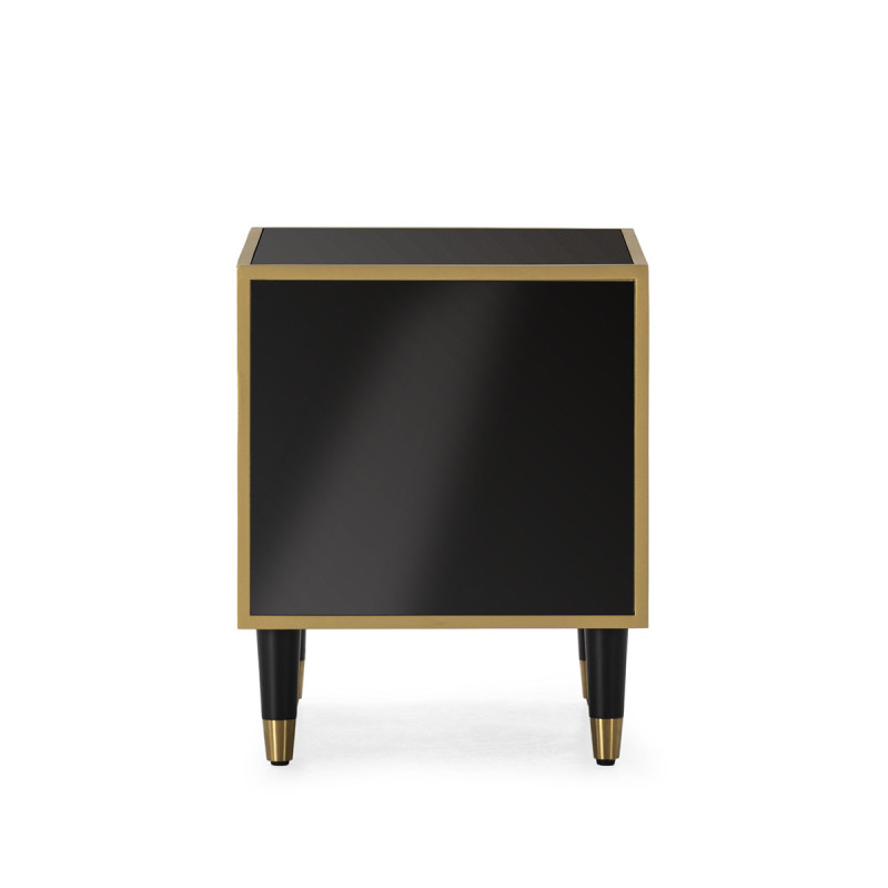 MESITA DE NOCHE 60x45x55 MADERA/METAL DORADO/ESPEJO NEGRO