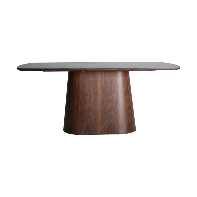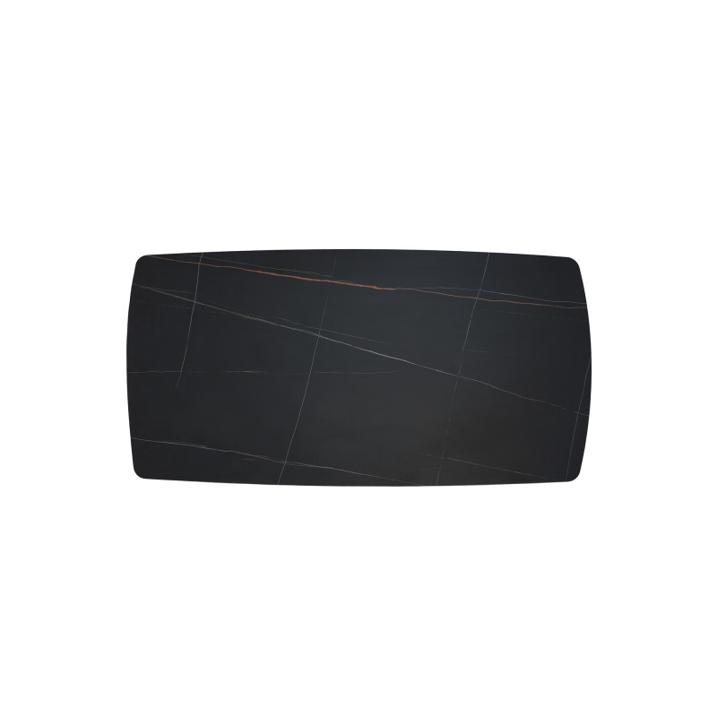Mesa comedor Dinsac de estilo contemporaneo, fabricado en ceramica en color negro, combinado con melamina en color marron y madera dm en color marron.