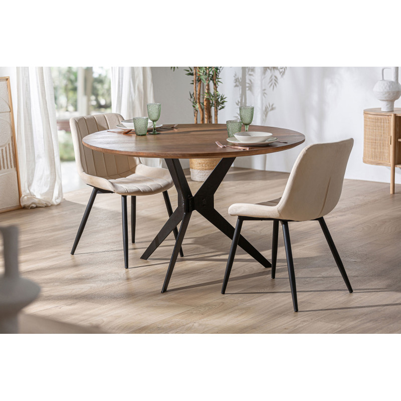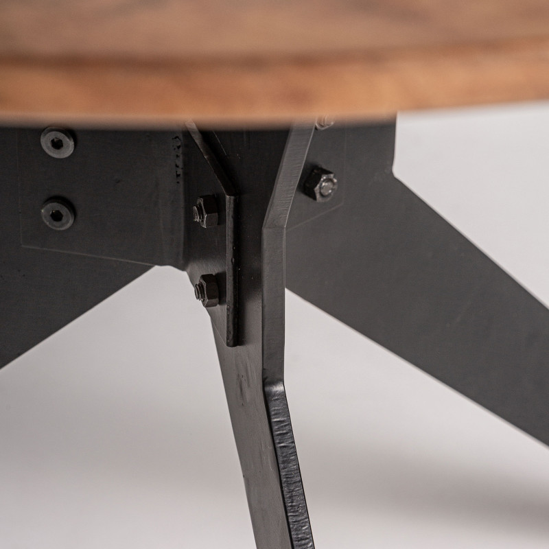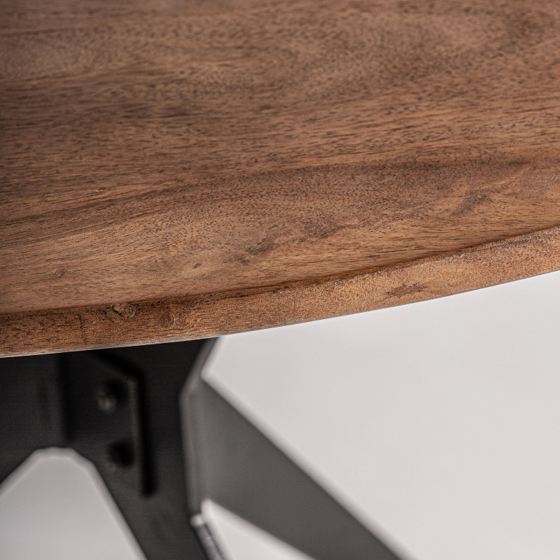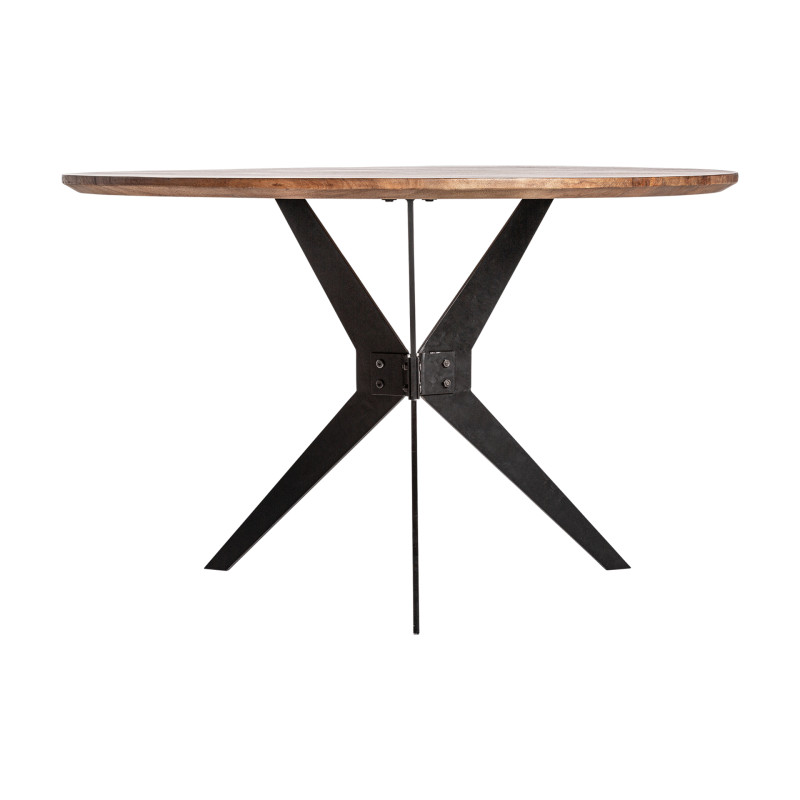 Mesa comedor redonda kanash, en color negro, de estilo industrial. Fabricado en madera de mango, combinado con hierro. Producto desmontable.