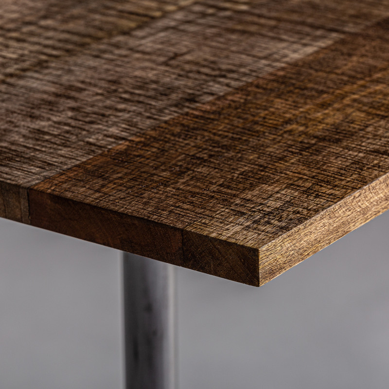 Mesa bar tyler de estilo colonial fabricado en hierro en color gris combinado con madera de mango en color natural. Producto desmontable.