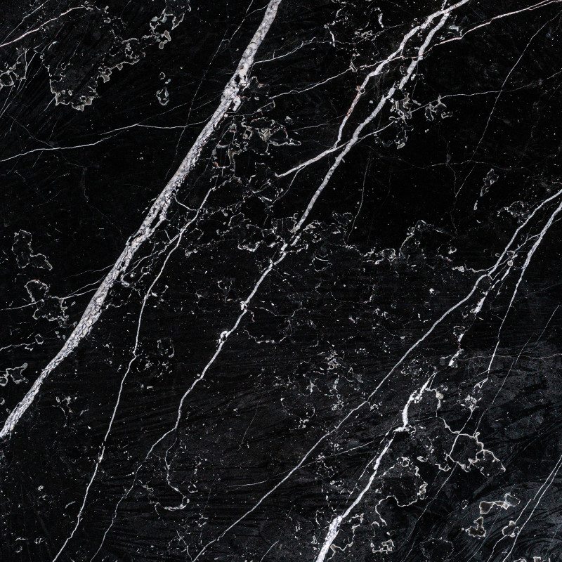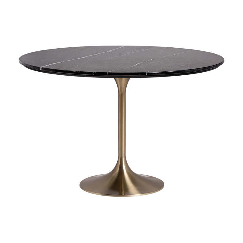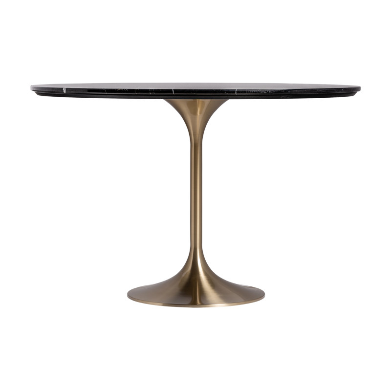 Mesa comedor kelheim en color negro oro de estilo art deco. Fabricado en piedra sinterizada combinado con acero. Producto desmontable.