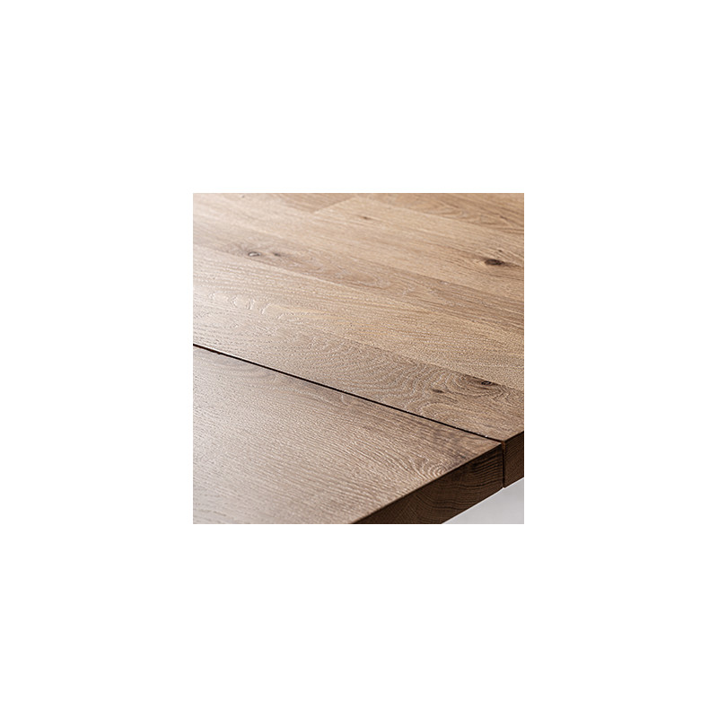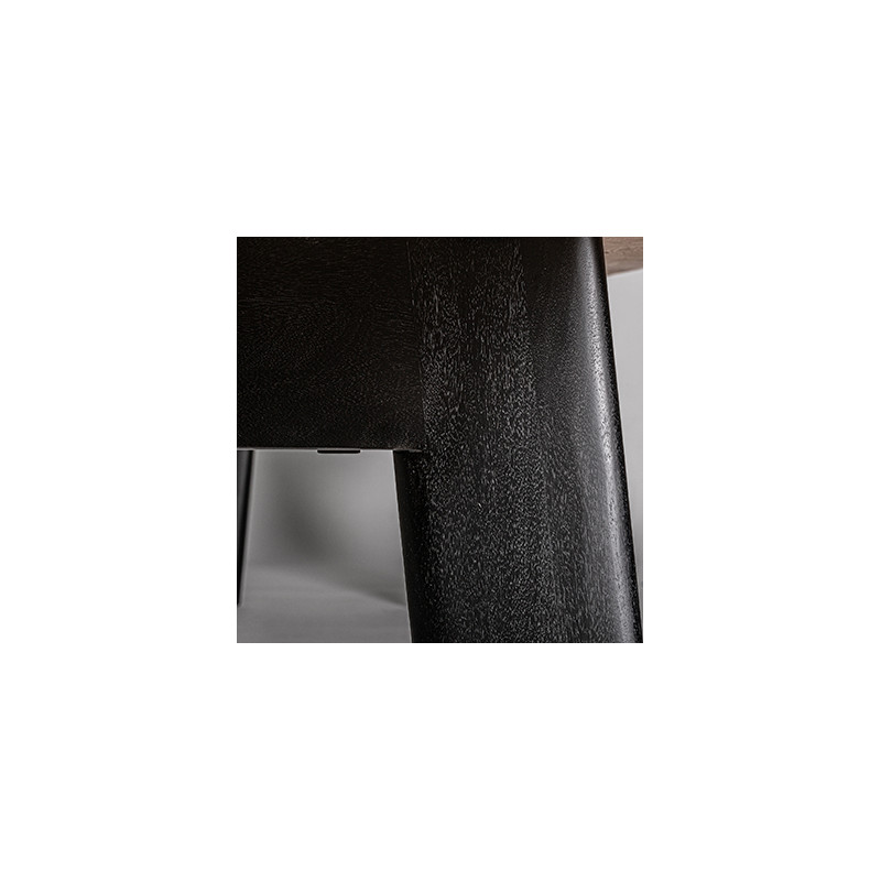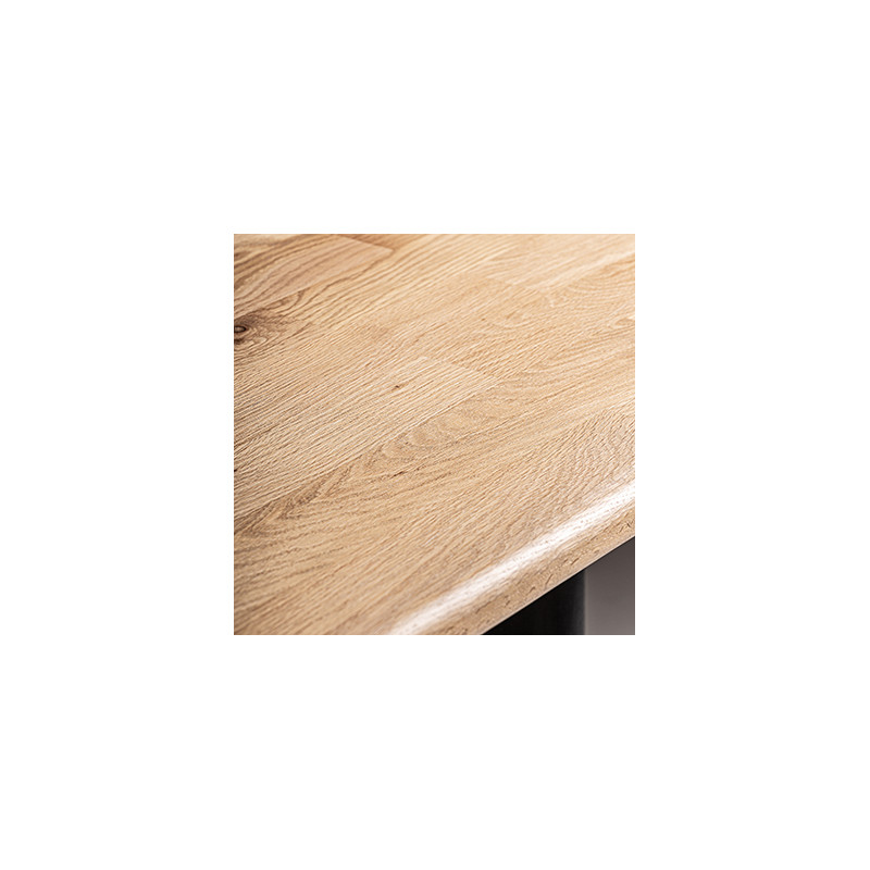 Mesa comedor nara de estilo contemporaneo fabricado en madera roble en color marron claro combinado con madera de mango en color negro. Producto desmontable.