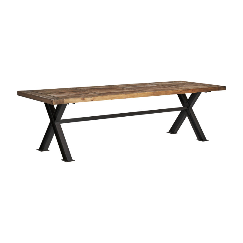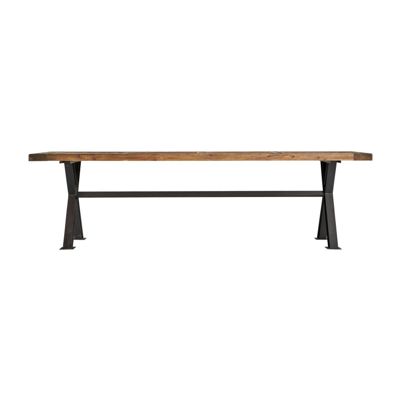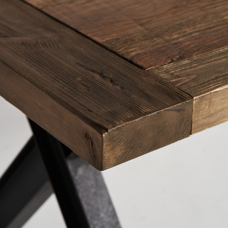 Mesa comedor pinsk en color natural de estilo industrial. Fabricado en madera de pino reciclado combinado con hierro.