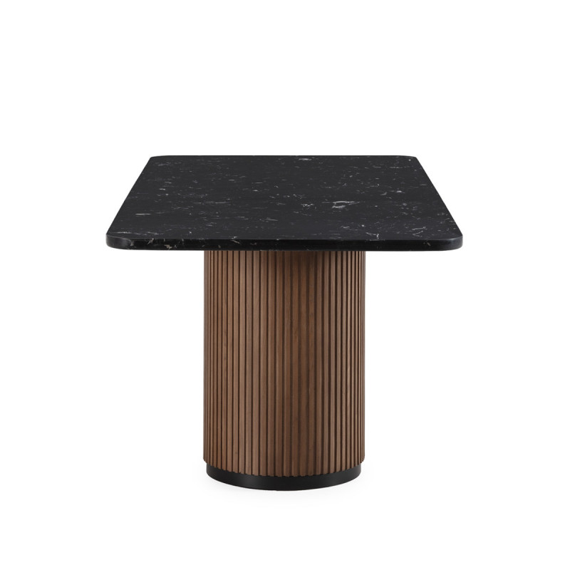 MESA DE COMEDOR 215x90x76 MADERA OLMO NOGAL/METAL NEGRO MATE/MARMOL RECONSTRUIDO NEGRO MARQUINA