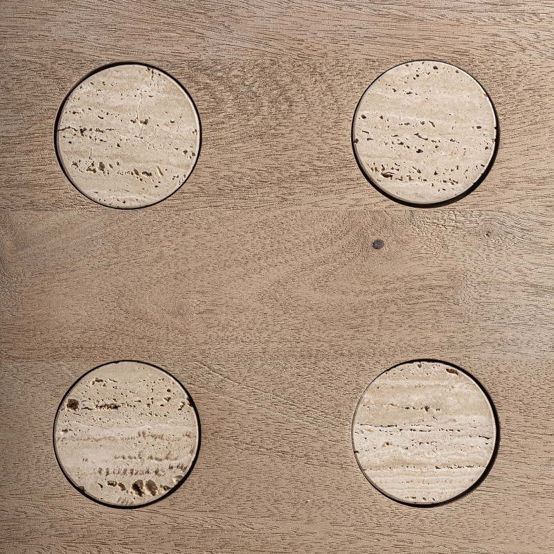 Mesa Comedor Jacquard de estilo Contemporaneo Fabricado en Madera de Mango en Color Marron Claro Combinado Con Travertino en Color Marron. Producto desmontable.