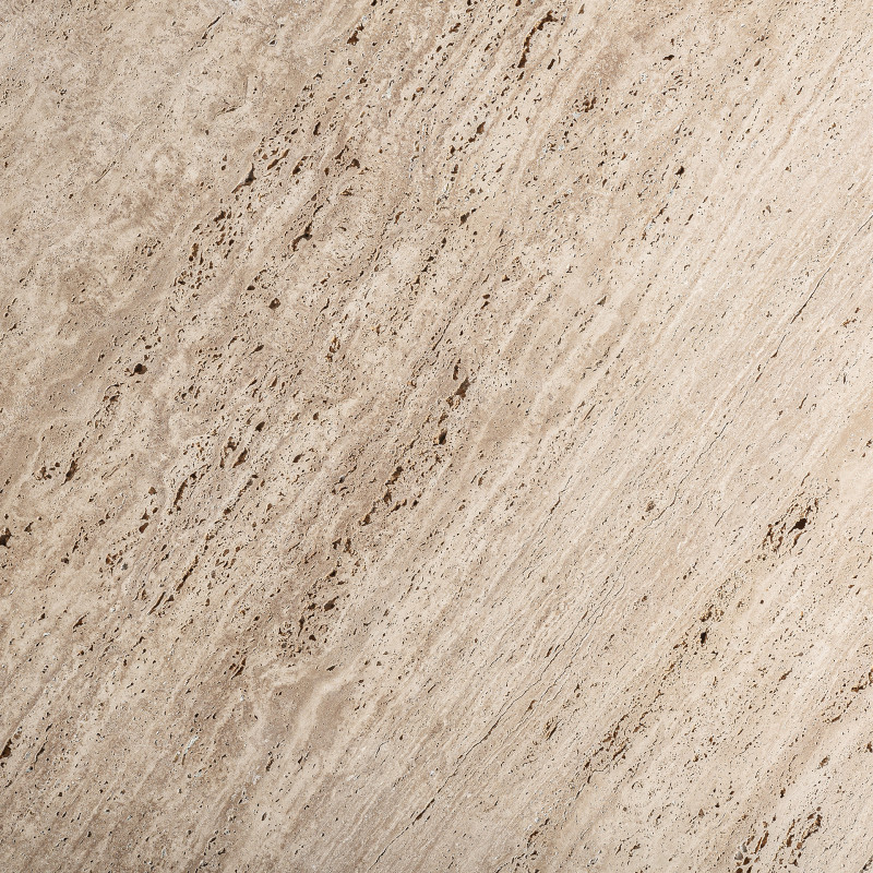 Mesa Comedor Varzi de estilo Art deco Fabricado en Travertino en Color Beige Combinado Con Madera de Mango en Color Marron. Producto desmontable.