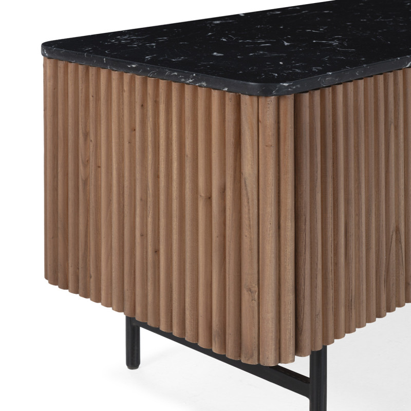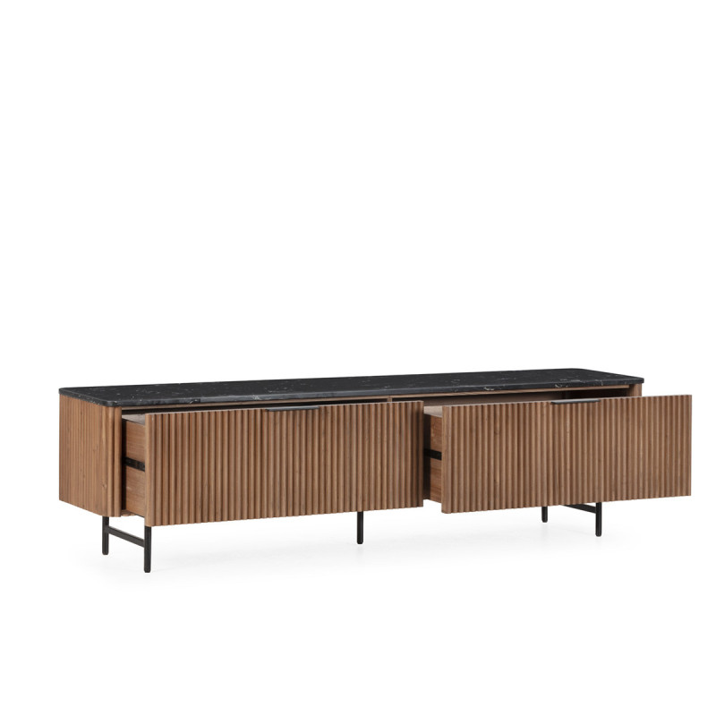 MUEBLE TV 184x40x50 MADERA OLMO NOGAL/METAL NEGRO MATE/MARMOL RECONSTRUIDO NEGRO MARQUINA