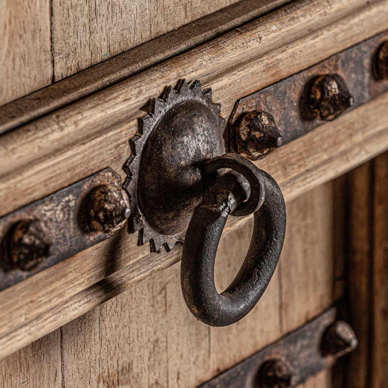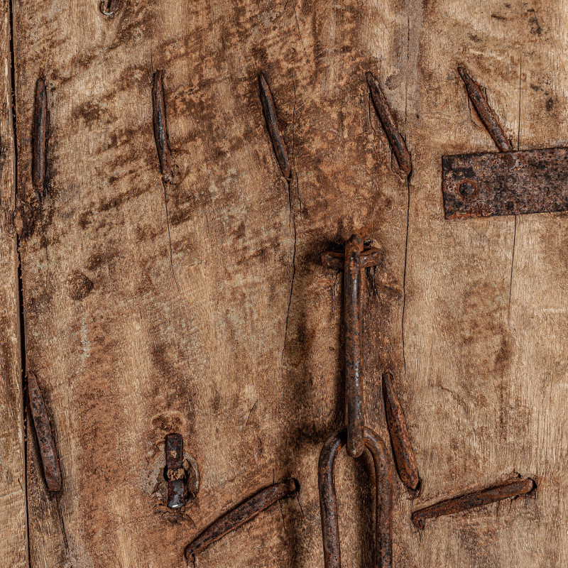 PUERTA SACHA, EN COLOR MARRON, DE ESTILO ETNICO. FABRICADO EN MADERA DE TEKA. PRODUCTO DESMONTABLE.