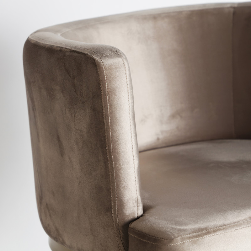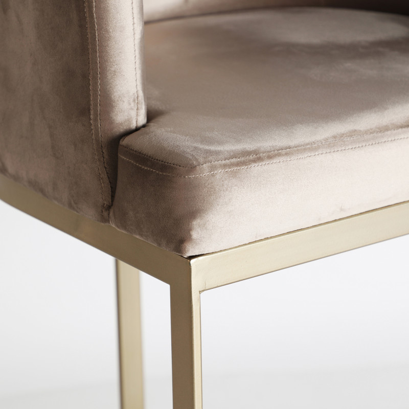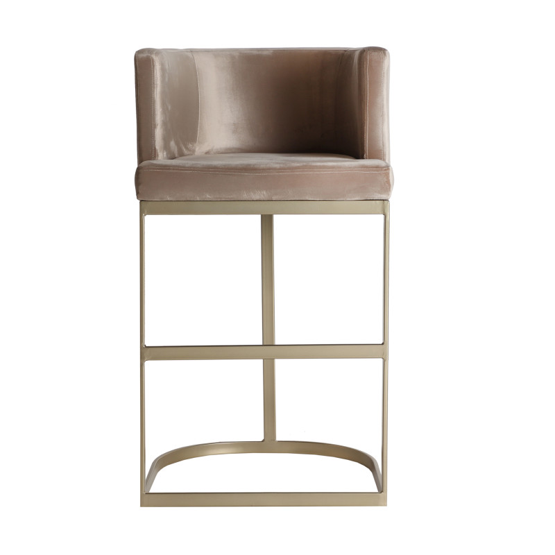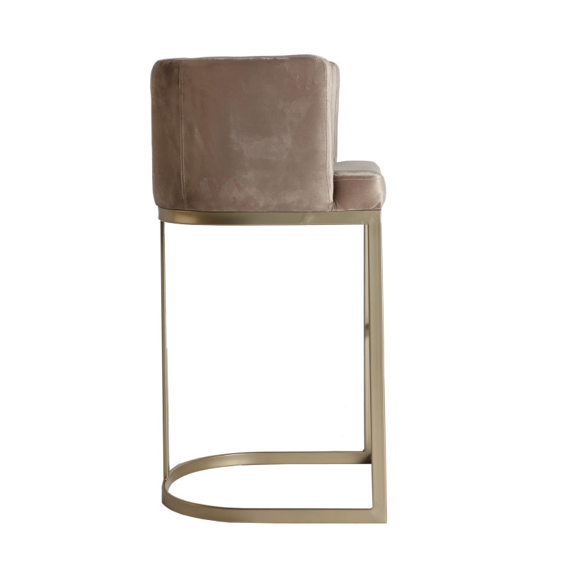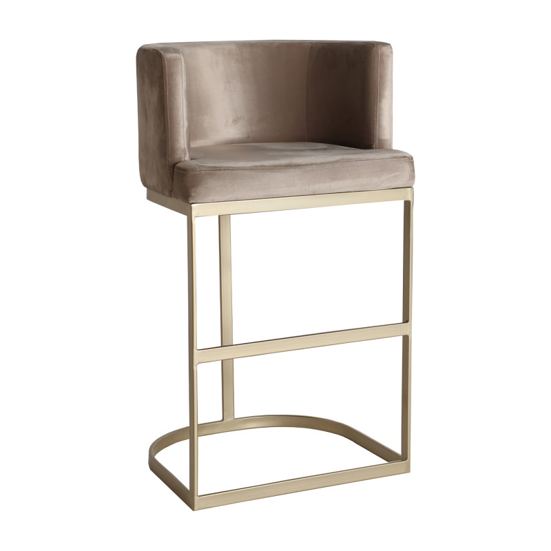 Taburete bibona, en color topo, de estilo art deco. Fabricado en terciopelo, combinado con hierro. Producto desmontable.