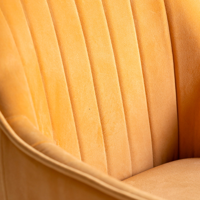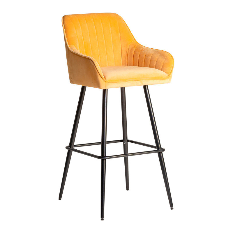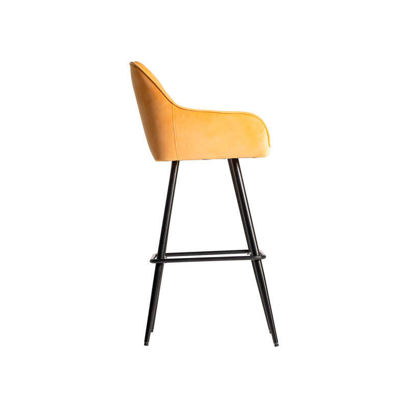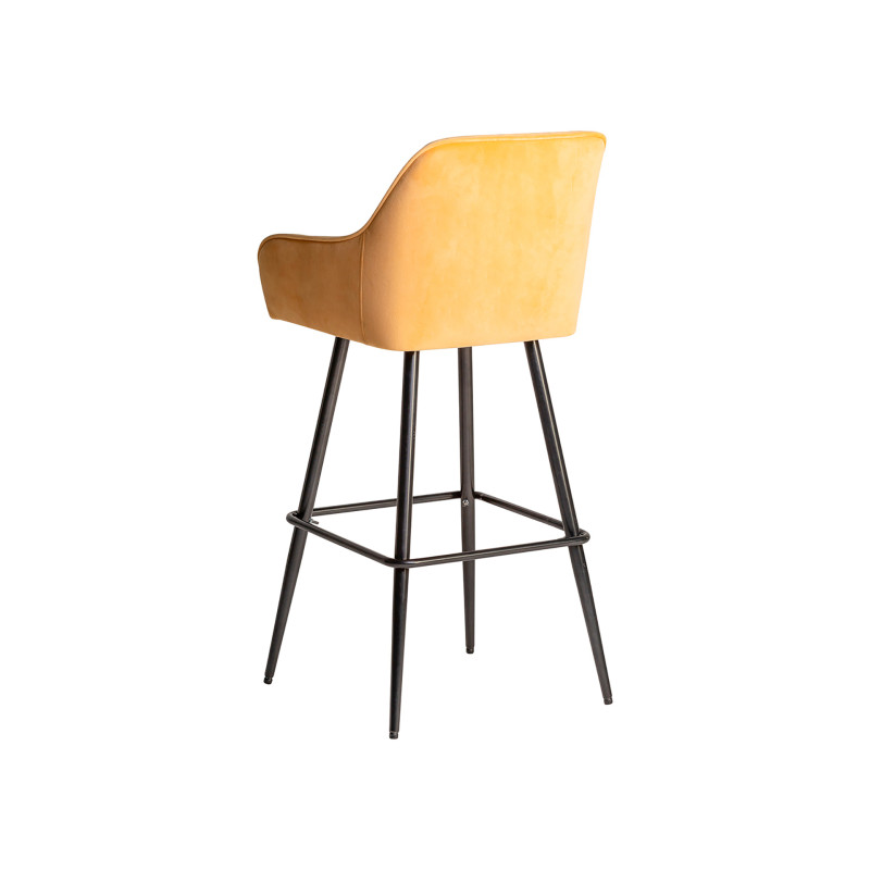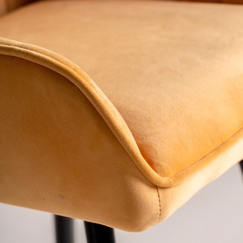 Taburete calci, en color mostaza, de estilo vintage. Fabricado en terciopelo, combinado con hierro y espuma. Producto desmontable.