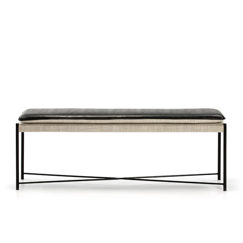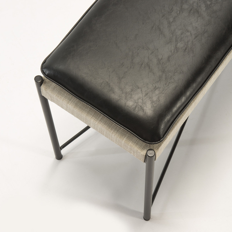 BANCO 132x33x48 METAL NEGRO/TELA GRIS CLARO/P.PIEL NEGRO