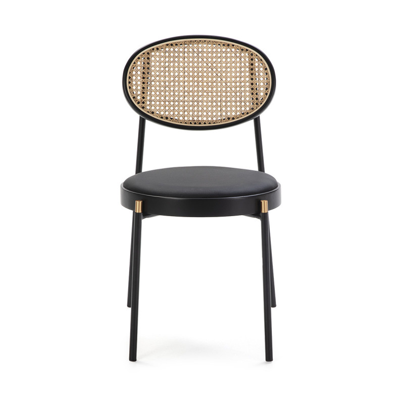 SILLA 43x53x83 RATAN/P.PIEL NEGRO/METAL NEGRO/DORADO