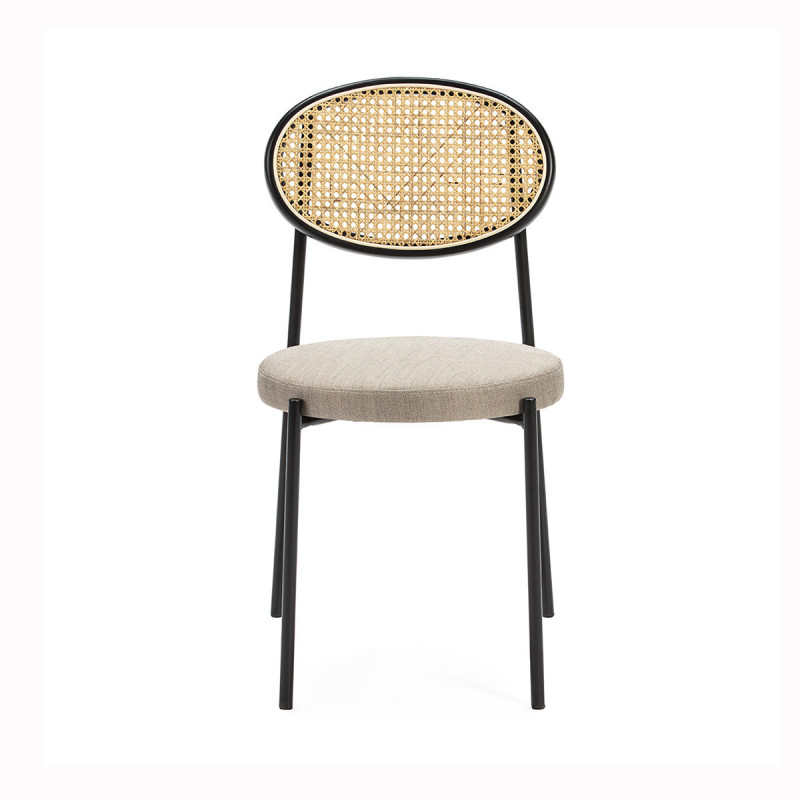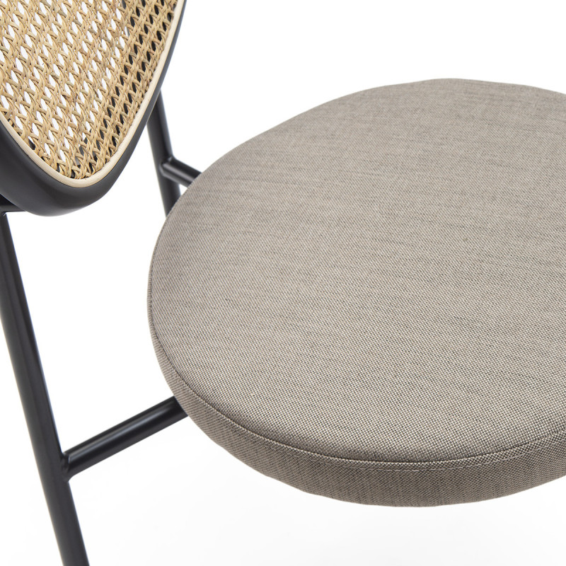SILLA 44x53x83 METAL NEGRO/RATAN NATURAL/TELA GRIS