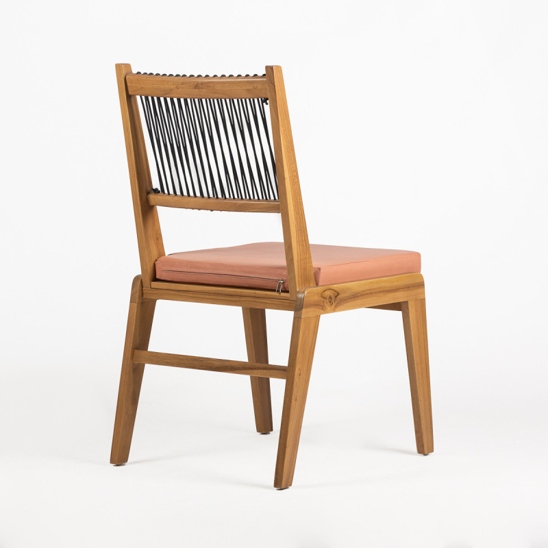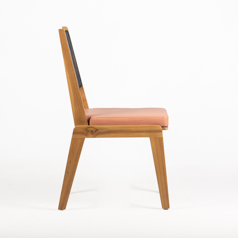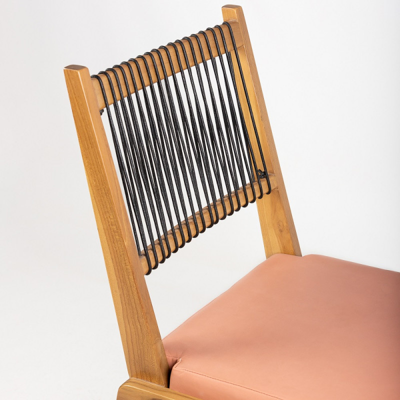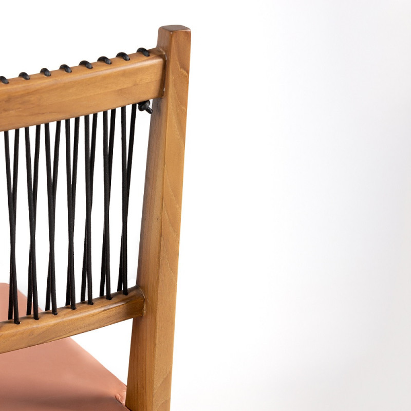 SILLA 52x59x95 MADERA TECA NATURAL/CUERO NEGRO/TELA MELOCOTON