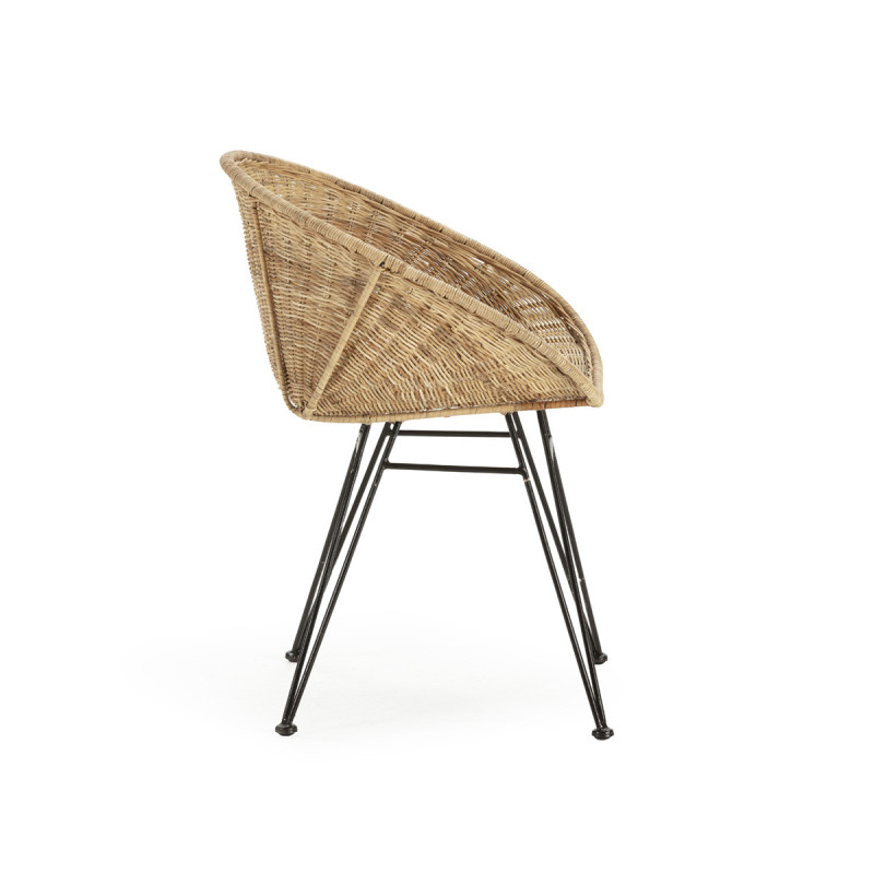 SILLA 52x60x75 METAL NEGRO/MIMBRE NATURAL