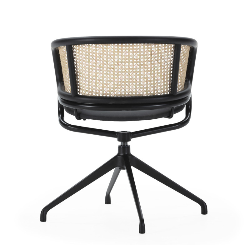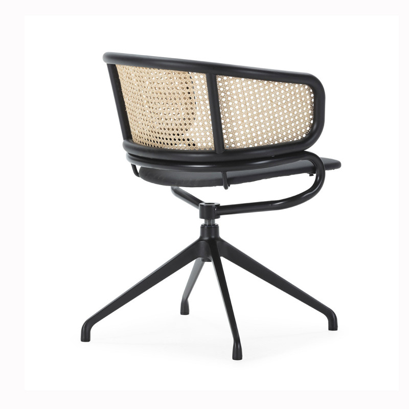 SILLA 56x53x74 METAL NEGRO/RATAN NATURAL/P.PIEL NEGRO