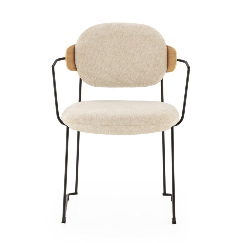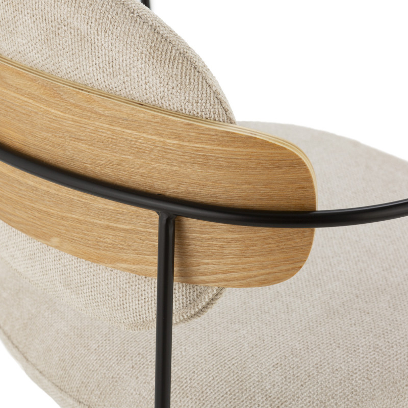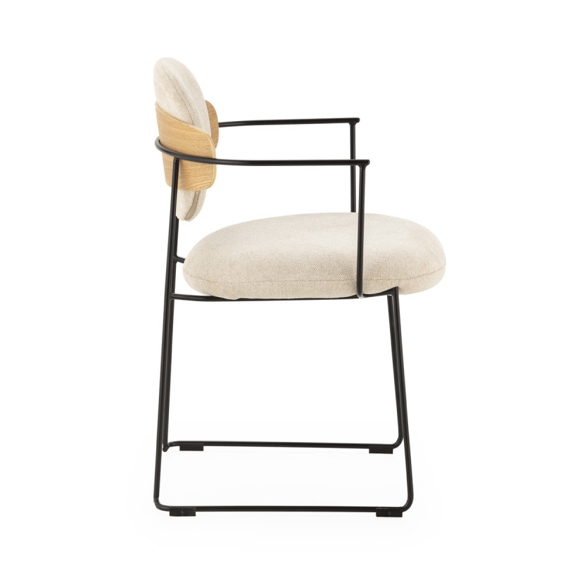 SILLA 58x55,5x80,3 METAL NEGRO/MADERA NATURAL/TELA BLANCO