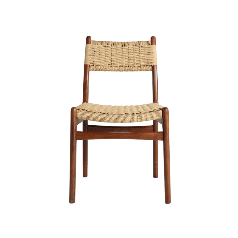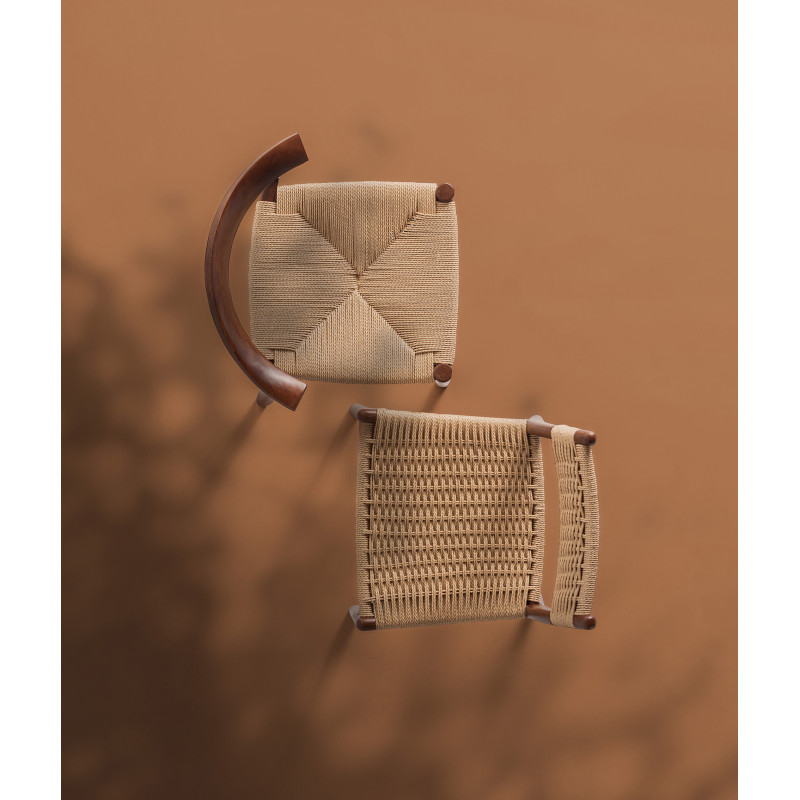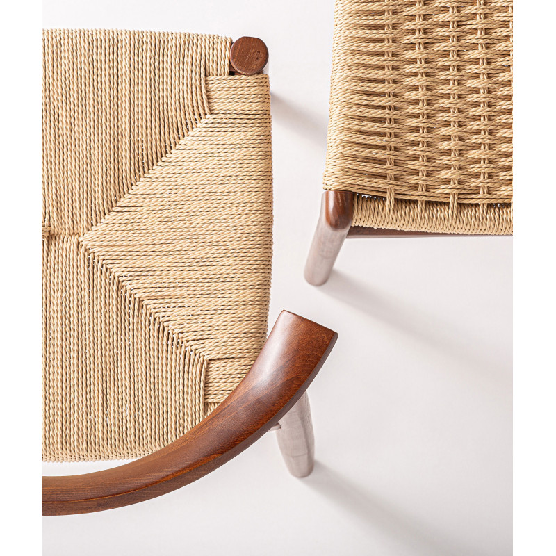 Silla Whel de estilo nordico, fabricado en madera de haya en color marron, combinado con cuerda en color beige.