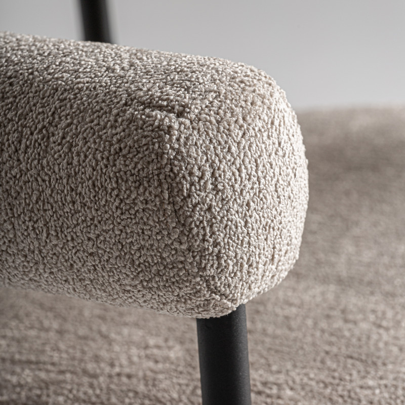 Silla albula de estilo contemporaneo fabricado en poliester en color gris combinado con acero inoxidable en color crema y espuma.