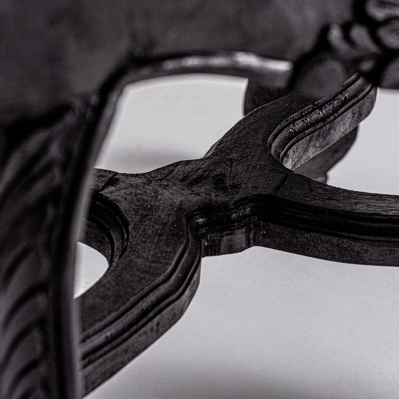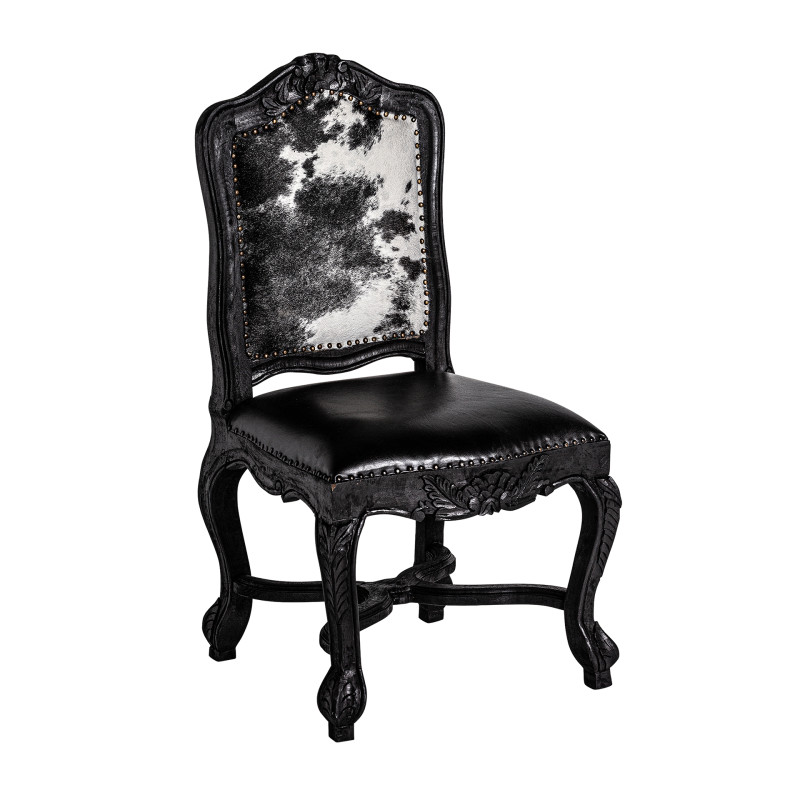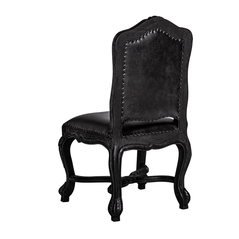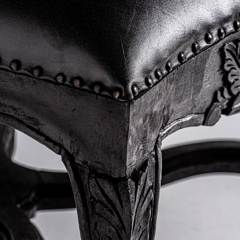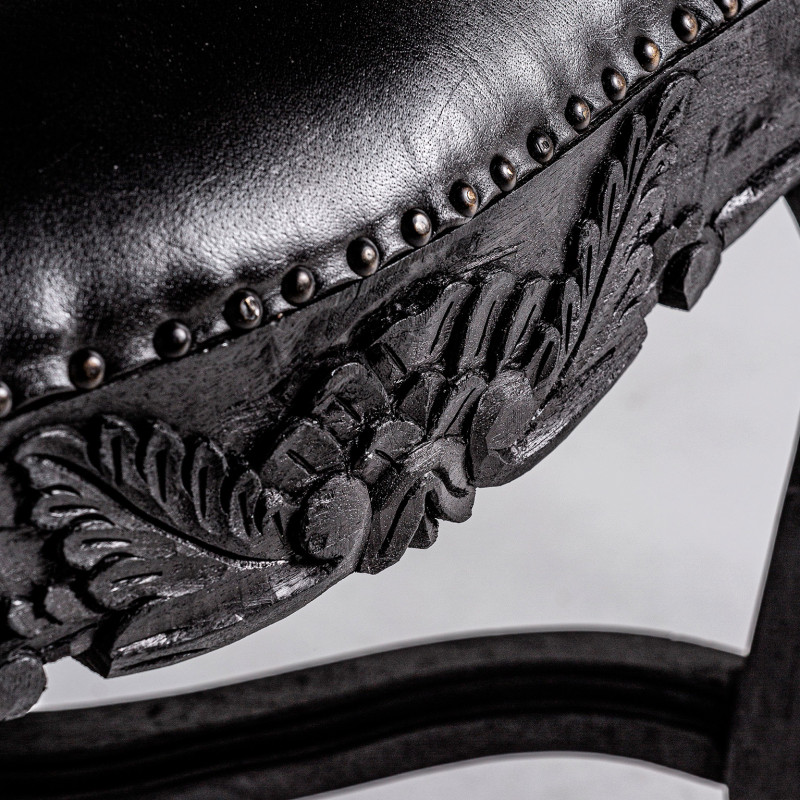 Silla delft de estilo clasico fabricado en madera de mango en color negro combinado con cuero cabra en color blanco y espuma.