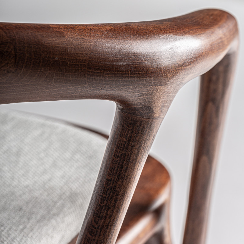 Silla Eauze de estilo contemporaneo fabricado en madera de haya en color marron combinado con poliester en color gris con acabado jaspeado.