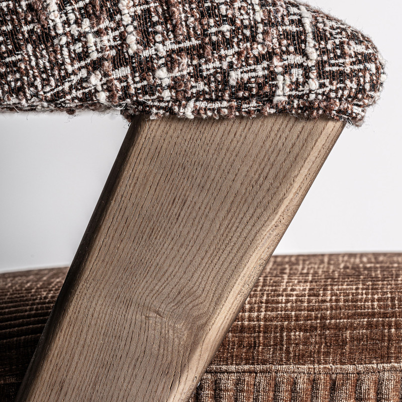 Silla kamenz de estilo contemporaneo fabricado en poliester en color marron con acabado jaspeado combinado con madera roble en color marron y madera de caucho.