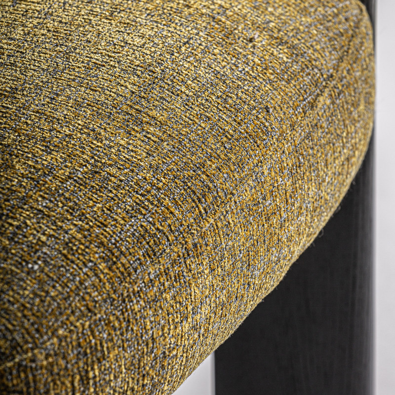 Silla nara de estilo contemporaneo fabricado en poliester en color amarillo con acabado jaspeado combinado con madera roble en color negro.
