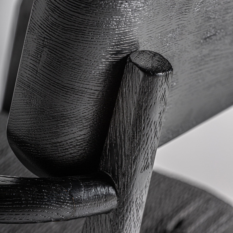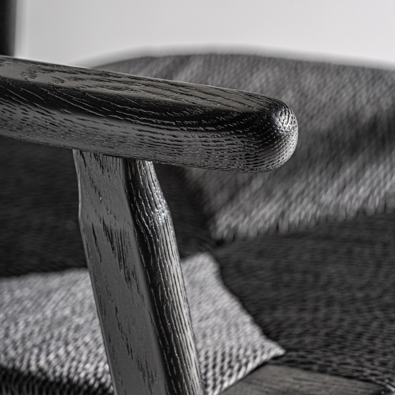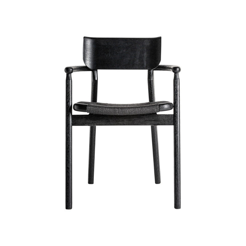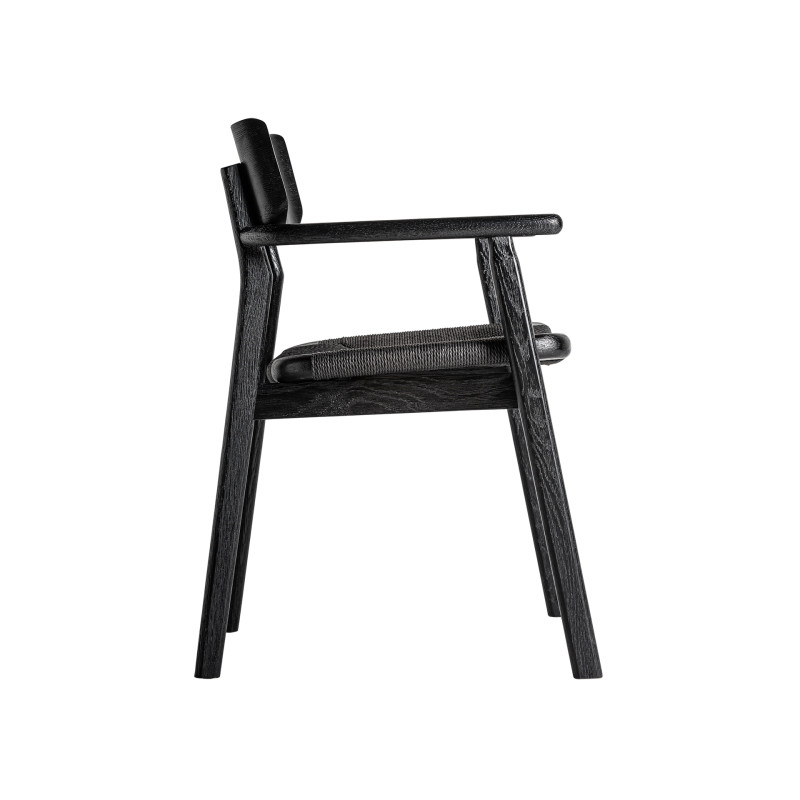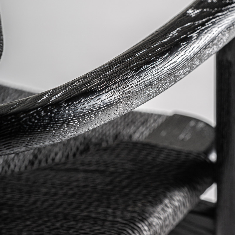 Silla tasque de estilo vintage fabricado en madera roble en color negro con acabado mate combinado con fibra natural en color negra.