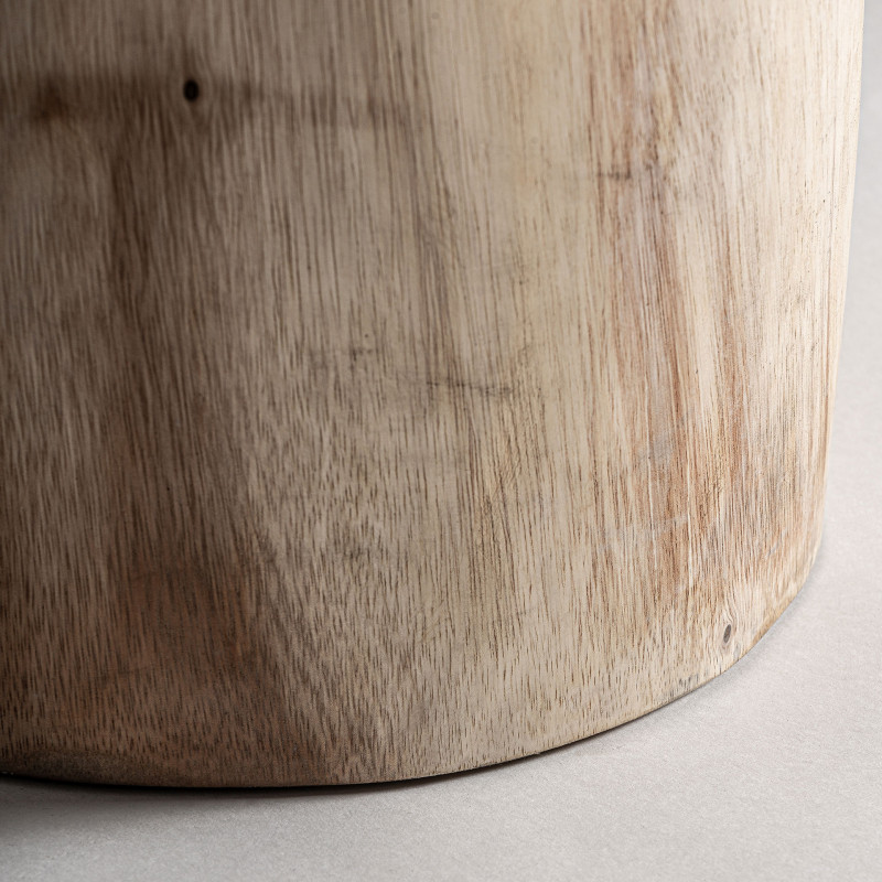 Taburete de estilo etnico fabricado en madera suar en color marron con acabado natural.