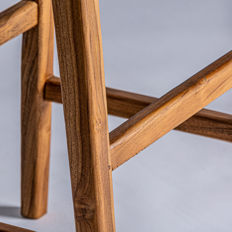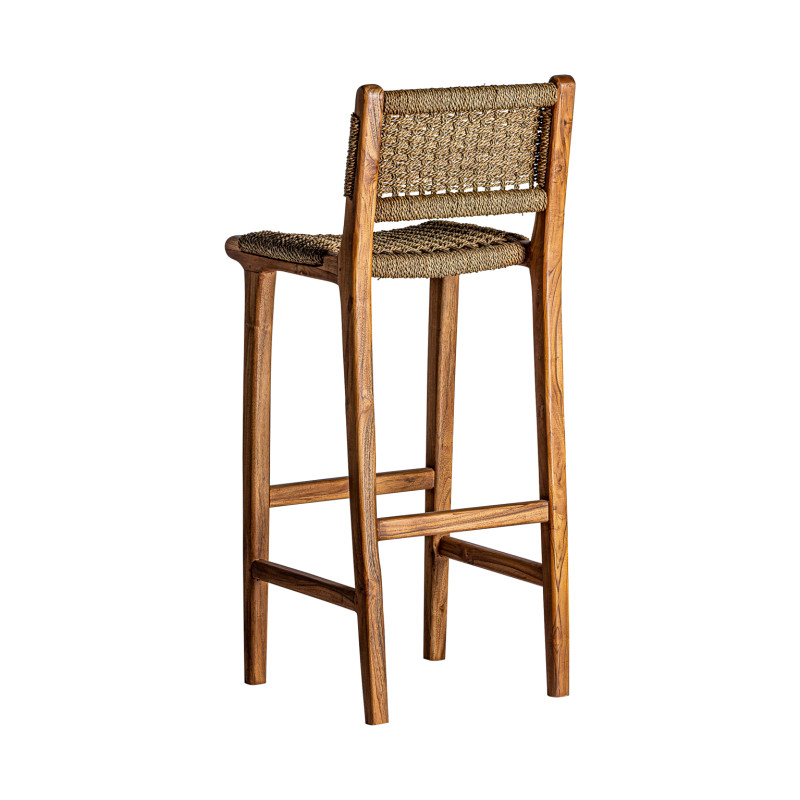 Taburete kavala de estilo vintage fabricado en madera de teka en color marron combinado con cuerda.
