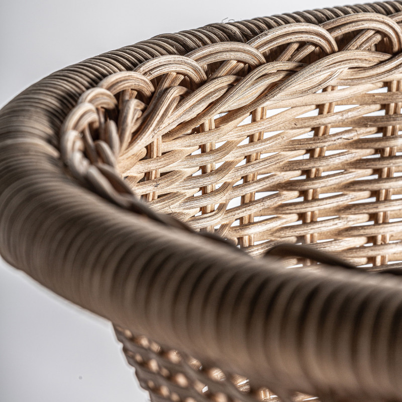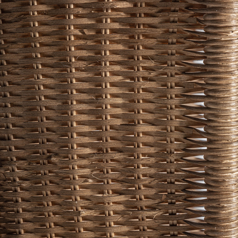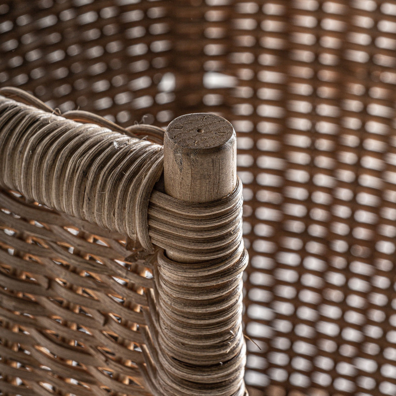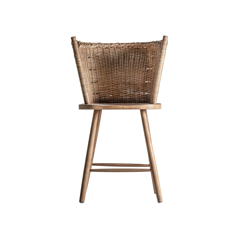 Taburete quenza de estilo boho fabricado en madera de abeto en color marron combinado con mimbre.