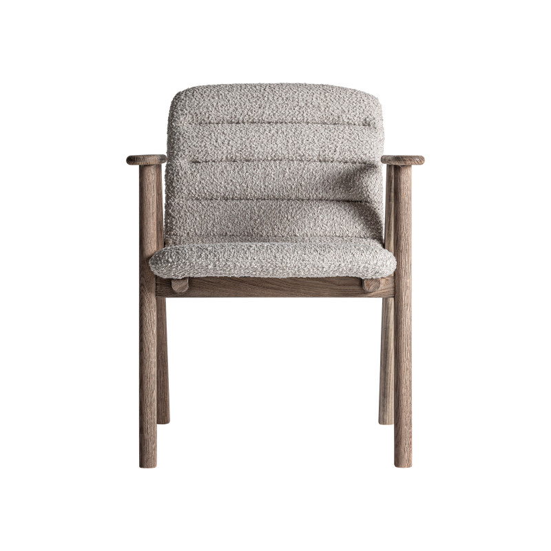 Silla Jacquard de estilo Contemporaneo Fabricado en Madera de Olmo en Color Marron Claro Combinado Con Poliester en Color Beige.