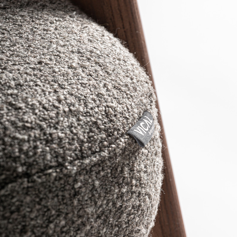 Silla Veney de estilo Contemporaneo Fabricado en Poliester en Color Gris Con Acabado Jaspeado Combinado Con Madera Roble en Color Marron Y Madera de Caucho.