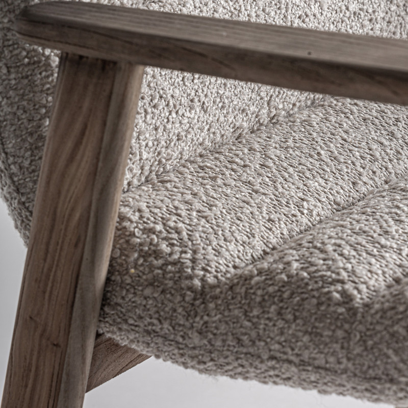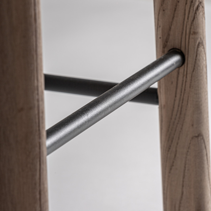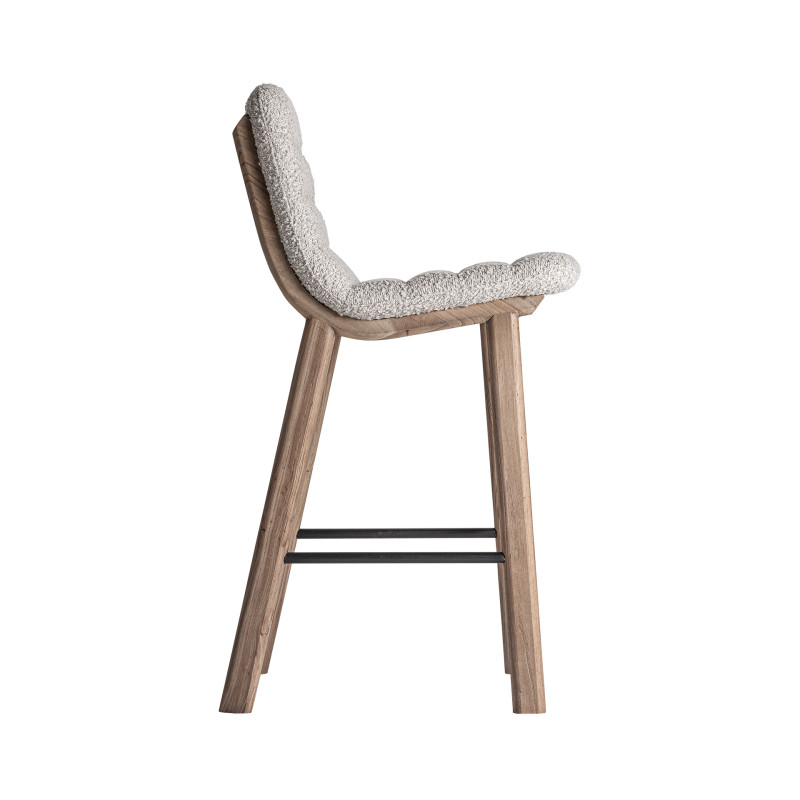 Taburete Jacquard de estilo Contemporaneo Fabricado en Madera de Olmo en Color Marron Claro Combinado Con Poliester en Color Beige.