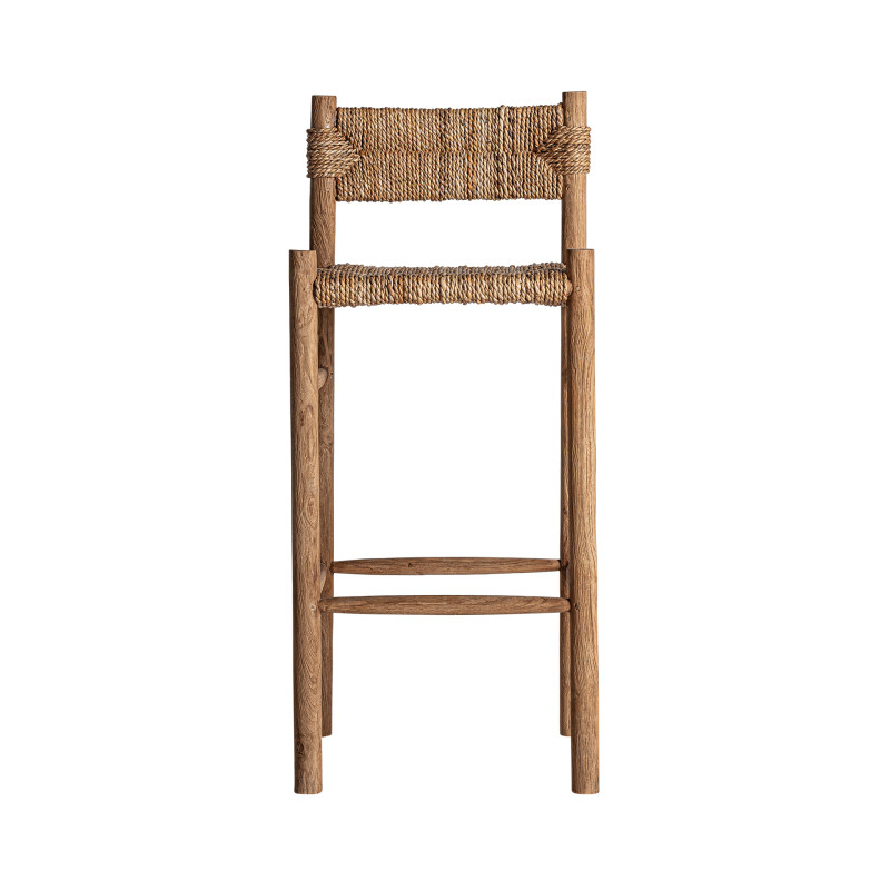 Taburete Voghera de estilo Colonial Fabricado en Madera de Teka en Color Marron Combinado Con Fibra Natural en Color Marron.