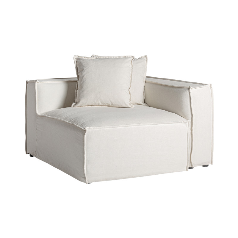 Modulo sofa esquinero derecha virolle de estilo colonial fabricado en lino en color blanco con acabado liso combinado con algodon y espuma. Producto desenfundable. Compatible con: 36089.