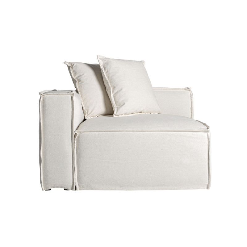 Modulo sofa esquinero izquierda virolle de estilo colonial fabricado en lino en color blanco con acabado liso combinado con algodon y espuma. Producto desenfundable. Compatible con: 36088.
