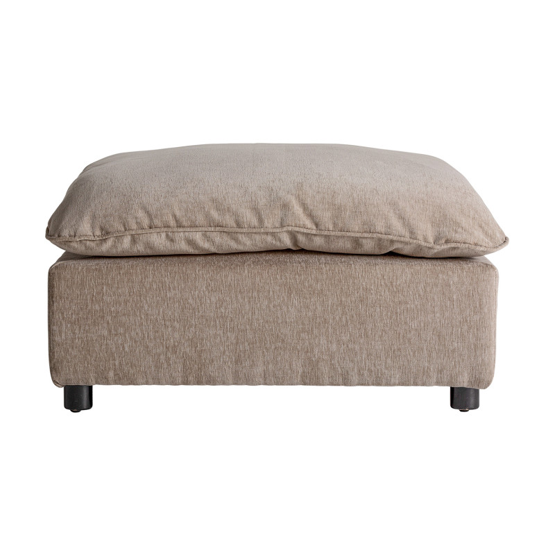 Modulo sofa reposapies argenta de estilo colonial fabricado en madera de caucho en color marron combinado con acero y acrilico en color beige. algodon. Producto desmontable desenfundable.
