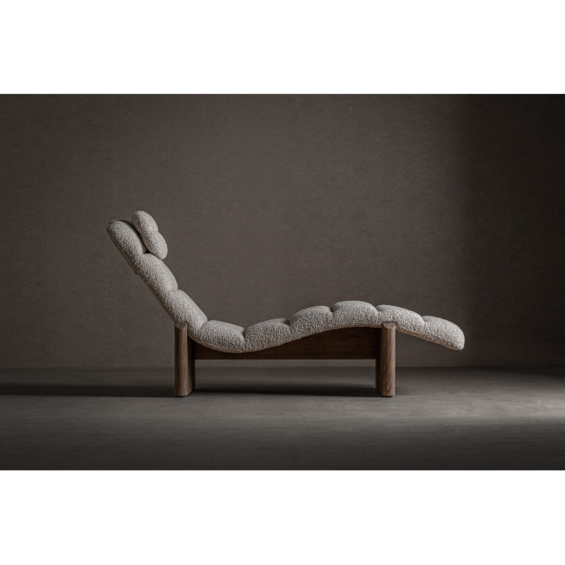 Chaise Longue Jacquard de estilo Contemporaneo Fabricado en Madera de Olmo en Color Marron Combinado Con Poliester en Color Beige.