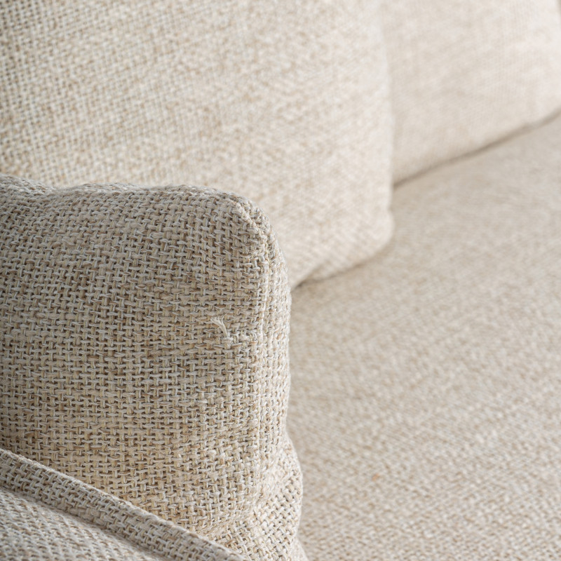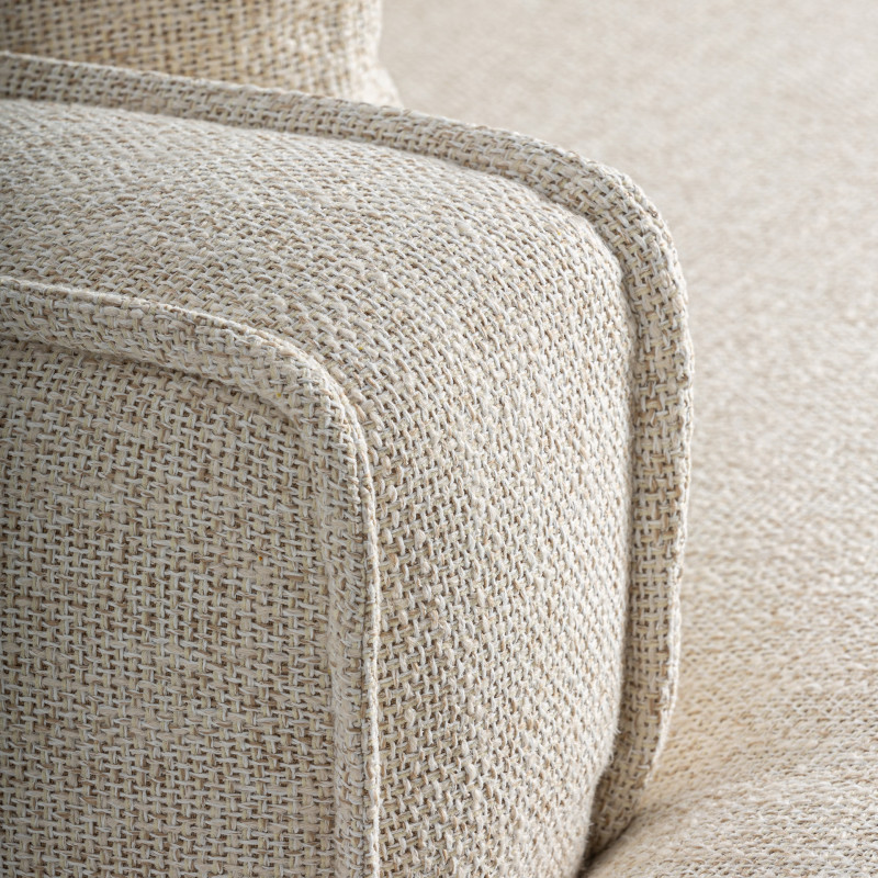 Modulo Sofa esquinero Fabricado en Poliester en Color Beige Combinado Con espuma Y Aluminio.